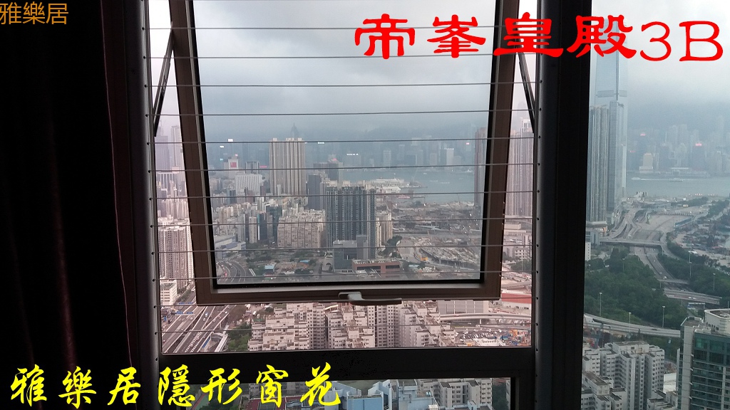雅樂居在帝峯皇殿安裝的露台隱形防護網,手搖升降晾衣架,掛牆推拉晾衣架,窗花,蚊網,鋁窗限位安全鎖等案例精選。